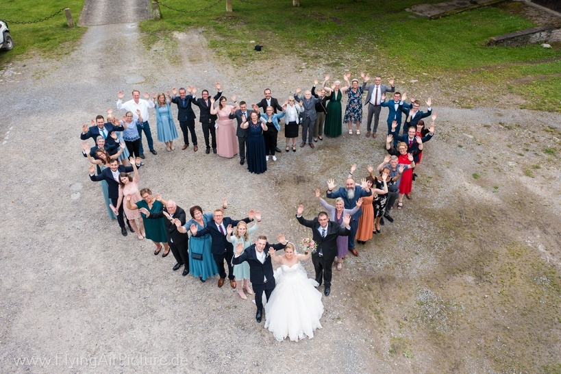Mit Luftaufnahmen aus der Vogelperspektive biete ich euch eine einzigartige Perspektive für eure Hochzeitsfotos. Perfekt für Gruppenbilder oder beeindruckende Übersichten eurer Location.